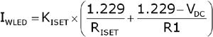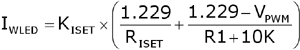 PWM 信號;其中,KISET為有源電流鏡像電路比值,典型值為900;VDC用于模擬調(diào)光的直流電壓;VPWM用于模擬調(diào)光的PWM信號的峰峰值;RISET、R1為輸出電流設(shè)置電阻,一般在千歐姆級。