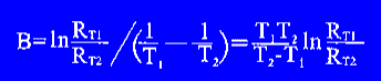 B值是NTC(負(fù)溫度系數(shù))熱敏電阻器的熱敏指數(shù),它被定義為兩個(gè)溫度下零功率電阻值的自然對(duì)數(shù)之差與兩個(gè)溫度倒數(shù)之差的比值,即: