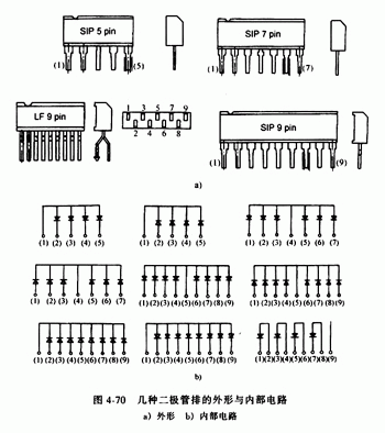 圖4-70是幾種二極管排的外形與內(nèi)部電路。