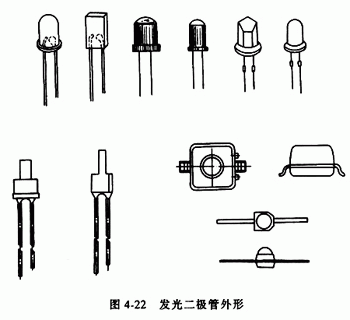 按其封裝外形可分為圓形、方形、矩形、三角形和組合形等多種,圖4-22為幾種發(fā)光二極管的外形。