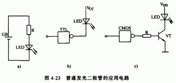 圖4-23是普通發(fā)光二極管的應(yīng)用電路。