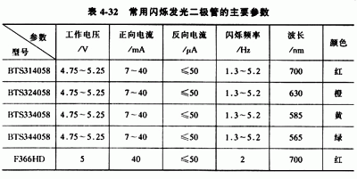 表4-32是幾種常用閃爍發(fā)光二極管的主要參數(shù)。