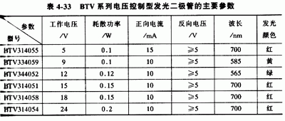 表4-33為BTV系列電壓控制型發(fā)光二極管的主要參數(shù)。