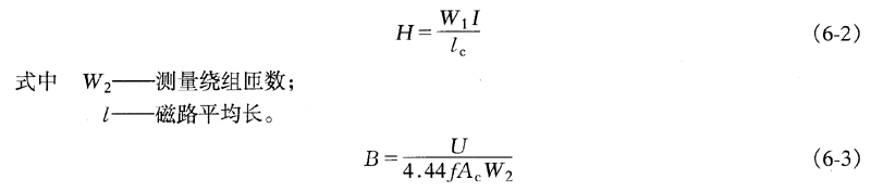 用專門的儀器就可以測試直流或交流磁化曲線,也可以采用電流表電壓表近似測量。仍以圖 6所示的環(huán)形磁心被測樣品為例,假設(shè)通以正弦交流勵磁電流(有效值為I),外層繞測量繞組(匝數(shù)為W2,),繞組的繞制應(yīng)緊密均勻,以盡量減少漏磁的影響。給定一組電流I,從測量繞組測出感應(yīng)電壓的有效值E=U,得到伏安特性U=f(I),然后用下面的公式就可以換算出正弦交流勵磁下磁心的基本磁化曲線B=f(H):