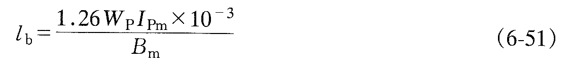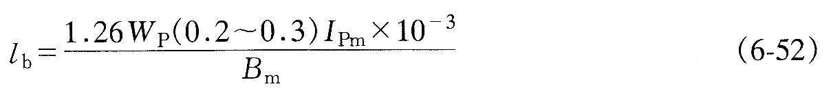 以上兩種情況,在設(shè)置氣隙后,如果允許將勵(lì)磁電流的值增大為初級(jí)繞組電流幅值Ipm的20%~30%,則可以用式(6-52)計(jì)算氣隙的總長(zhǎng)度lb(mm)
