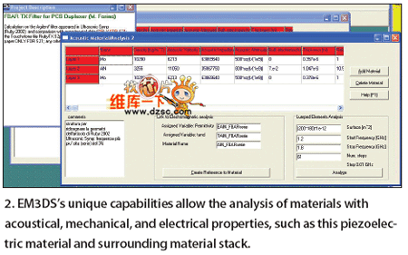 例如,對(duì)于BAW諧振器,EM3DS定義了一種特殊類(lèi)型的介質(zhì)材料,其中介電常數(shù)和損耗是頻率的函數(shù)。這種特殊材料的頻率行為,通過(guò)聲學(xué)分析進(jìn)行了初步計(jì)算,其中等效傳輸線(xiàn)被用于對(duì)聲波傳播進(jìn)行建模。作為這一分析的一部分,用戶(hù)指定該壓電材料以及周?chē)牧隙逊e的力學(xué)性能,在對(duì)話(huà)窗口內(nèi)對(duì)該壓電材料的有效介電常數(shù)創(chuàng)建參數(shù)參考。一旦被指定,這些參數(shù)可以用于該EM3DS?。牛颓蠼馄鳎▓D3和圖4)。
