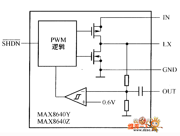 MAX8640Y/MAX640Z是由美信(MaximIntegratedProducts)推出的500mA高效降壓型DC-DC轉(zhuǎn)換器,輸出電流為500mA,輸出電壓范圍為0.8~2.5V,采用纖小的6腳SC70封裝和μDFN封裝,適用于單節(jié)Li+或3節(jié)NiMH/NiCd電池供電的蜂窩電話、智能手機、數(shù)碼相機以及類似的便攜式設(shè)備中。