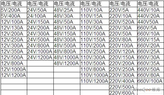 AC/DC、DC/DC開關(guān)電源參數(shù)表