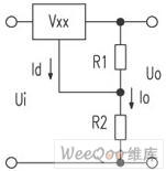 其中V××代表IC的輸出電壓。這是一個完整的公式,其結果是的。V0的表達式與固定輸出穩(wěn)壓器接地端的靜態(tài)工作電流Id有關。當Id變化時,會引起輸出電壓和負載電流的變化,但由于Id值較小,一般僅為幾個毫安,所以對穩(wěn)壓器的影響很小。當R1、R2阻值取得較小時,可以忽略IdR2這一項。此時V0的表達式可簡化成:
