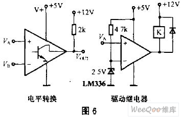 運放可以做比較器電路,但性能較好的比較器比通用運放的開環(huán)增益更高,輸入失調(diào)電壓更小,共模輸入電壓范圍更大,壓擺率較高(使比較器響應速度更快)。另外,比較器的輸出級常用集電極開路結(jié)構(gòu),如圖6所示,它外部需要接一個上拉電阻或者直接驅(qū)動不同電源電壓的負載,應用上更加靈活。但也有一些比較器為互補輸出,無需上拉電阻。