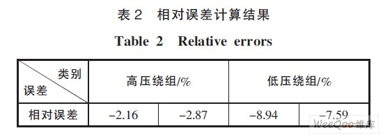 從表2 可以看出, 高壓繞組的相對誤差很小,這是由于探頭和銅導(dǎo)線之間只隔著導(dǎo)線絕緣層和絕緣墊片。而低壓繞組的相對誤差偏大,這是由于低壓繞組的探頭安裝在撐條中,與熱點不僅隔著絕緣層而且離熱點有一定距離,所以相對誤差偏大。