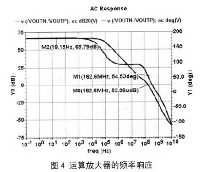圖4給出了本次設(shè)計的運算放大器的仿真結(jié)果。