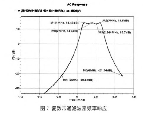 復數(shù)帶通濾波器的頻率響應(yīng)曲線如圖7所示。