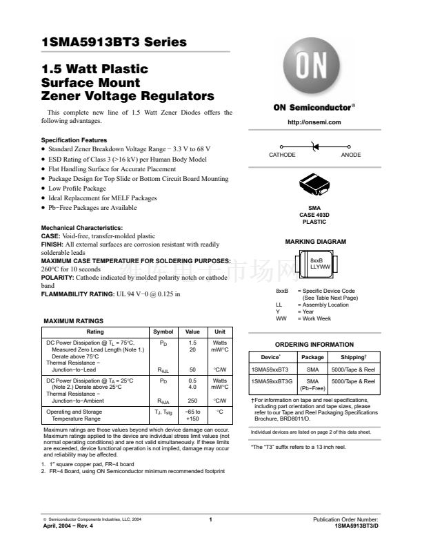 • 1.5 Watt Plastic Surface Mount Zener Voltage Regulators