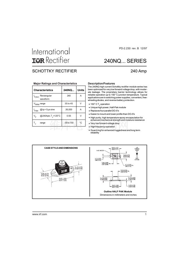 The 240NQ high current Schottky rectifier module series has