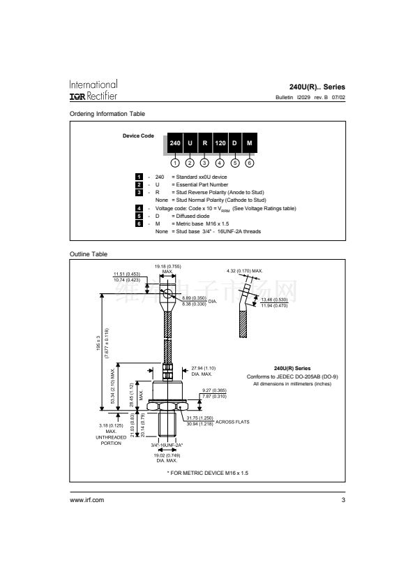 600V 320A Std. Recovery Diode in a DO-205AB (DO-9)package