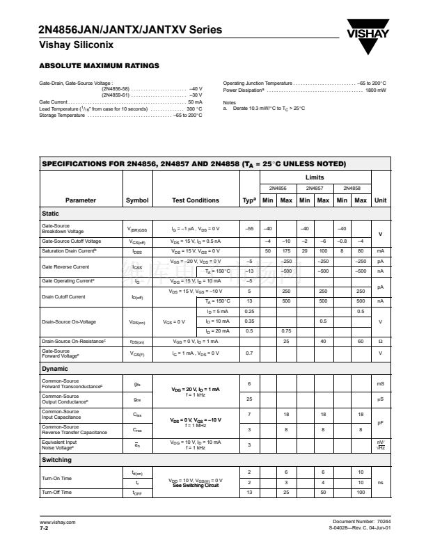 2N4856JAN/JANTX/JANTXV Series