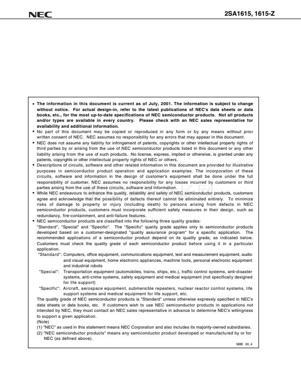 Please refer to 鈥淨(jìng)uality Grades on NEC Semiconductor Devices鈥?(Document No. C11531E) published by NEC