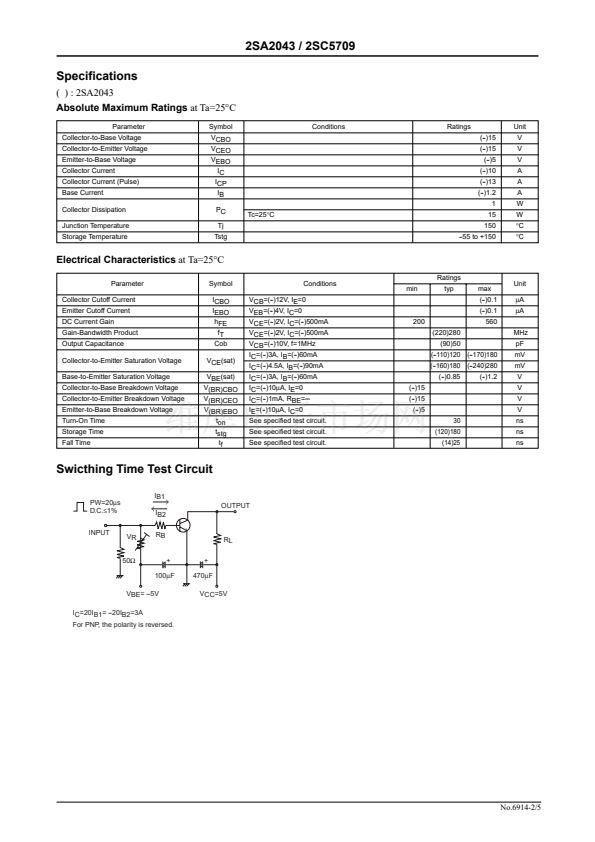 PNP / NPN Epitaxial Planar Silicon Transistors