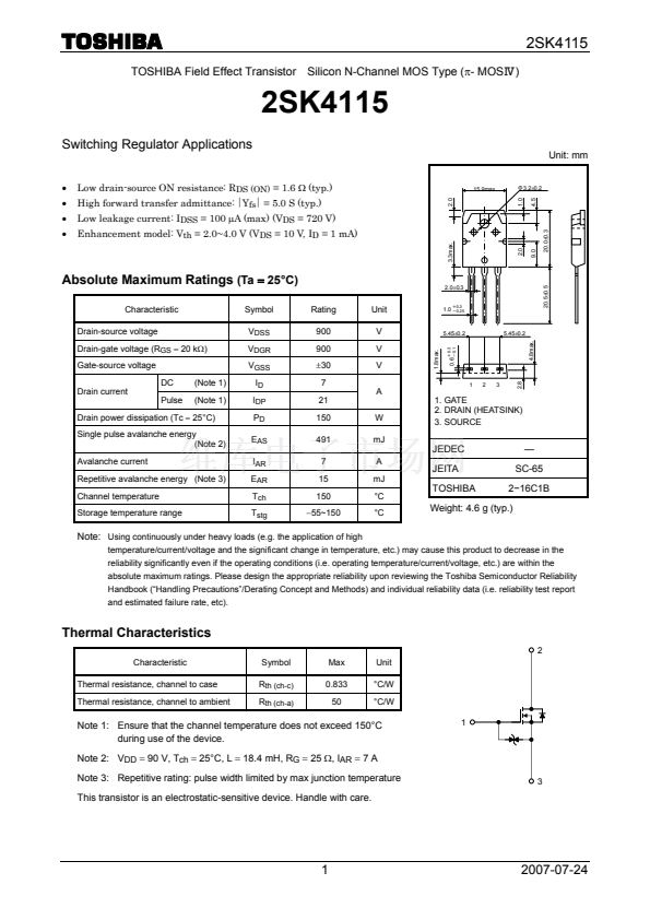 This transistor is an electrostatic-sensitive device. Handle with care.