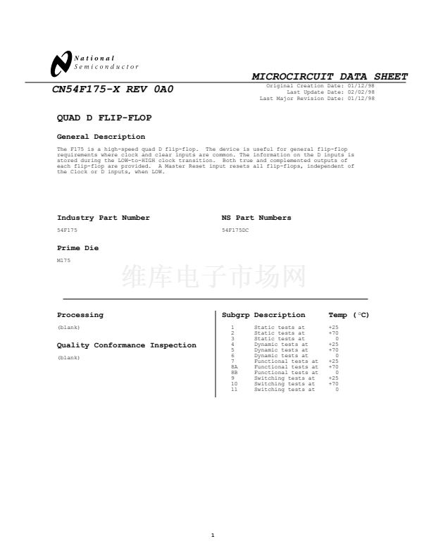 The F175 is a high-speed quad D flip-flop. The device is useful for general flip-flop