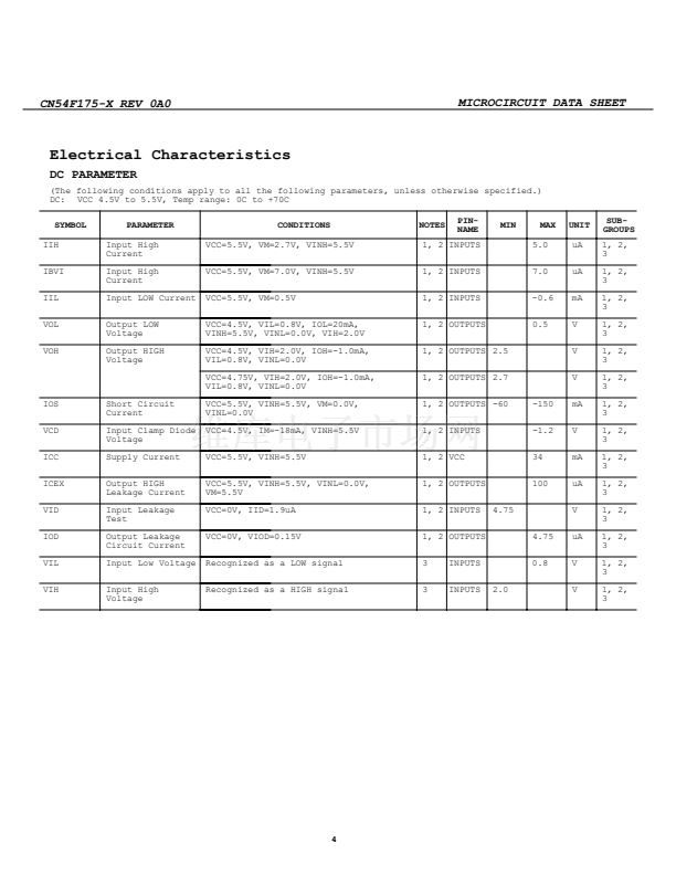MICROCIRCUIT DATA SHEET