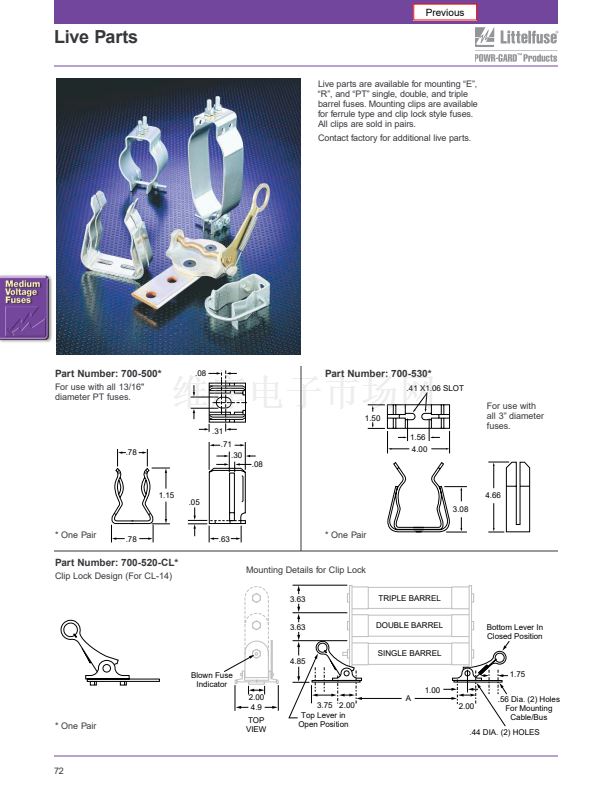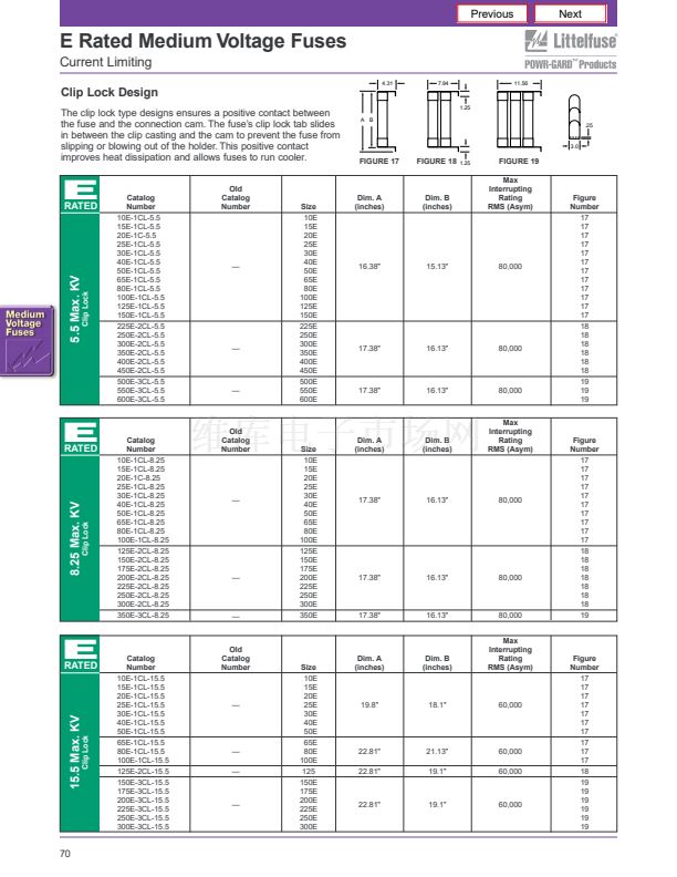 ratings. Conventional ferrule type, clip lock, and bolt-in