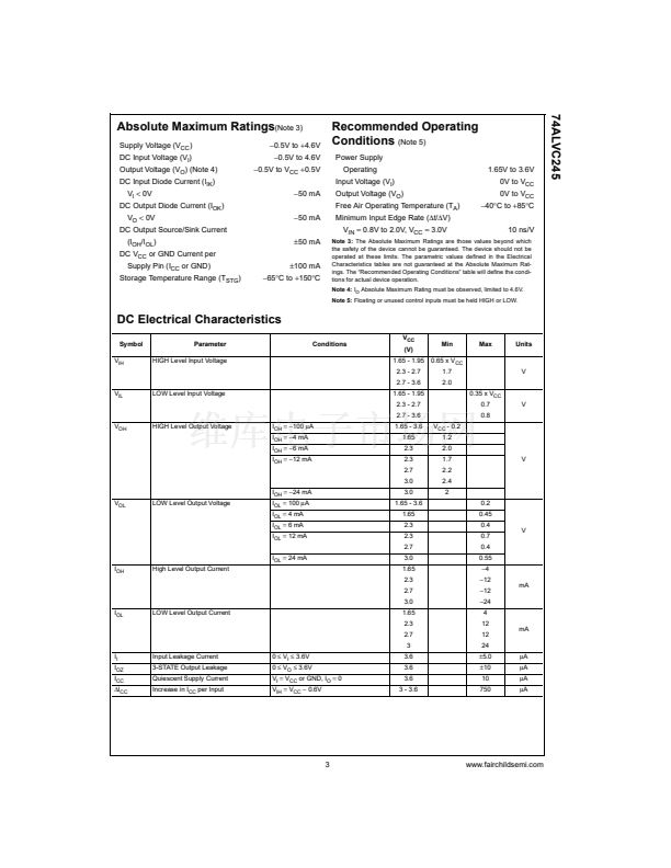 74ALVC245 Low Voltage Bidirectional Transceiver with 3.6V Tolerant Inputs and Outputs