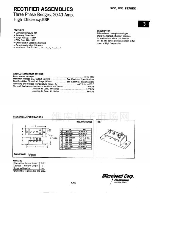 • RECTIFIERS ASSEMBLIES THREE PHASE BRIDGES, 20-40 AMP, STANDA...