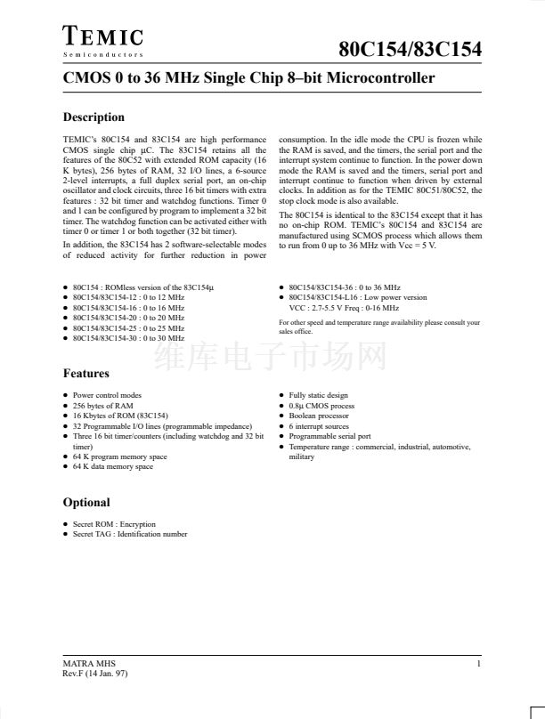 TEMIC鈥檚 80C154 and 83C154 are high performance