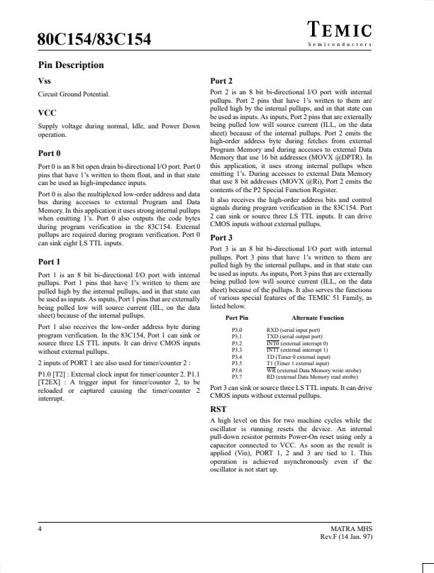 no on-chip ROM. TEMIC鈥檚 80C154 and 83C154 are