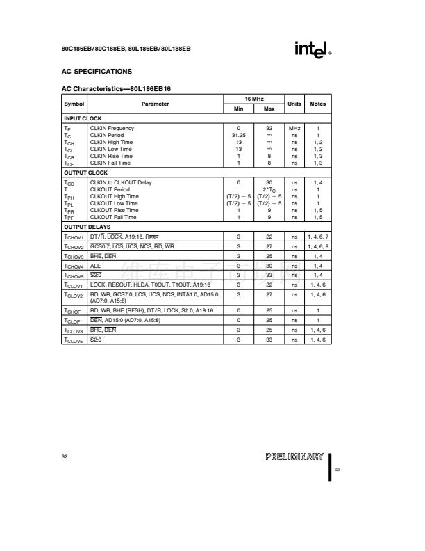 16 MHz (80L186EB16 80L188EB16)