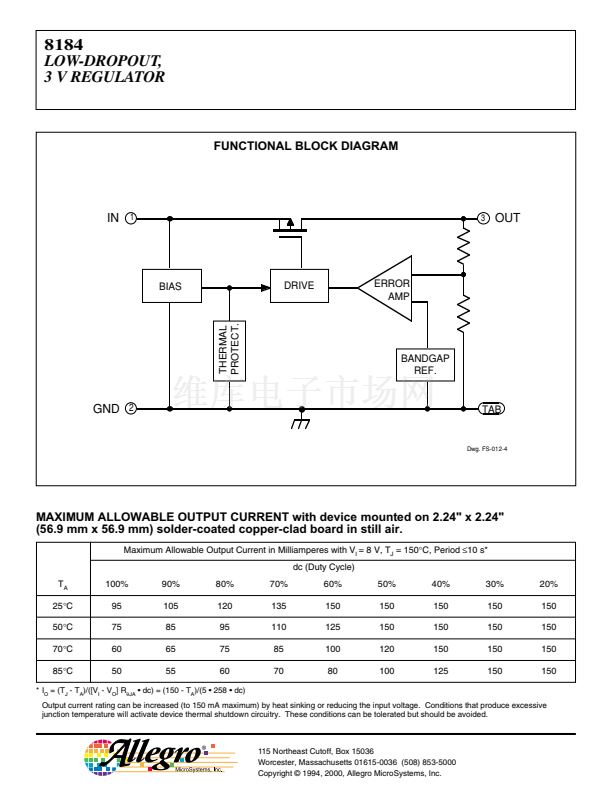 telephones, the A8184SLT voltage regulator offers the reduced dropout