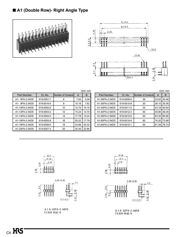 The A1 series contains 16 types of 6 to 64 contacts, while