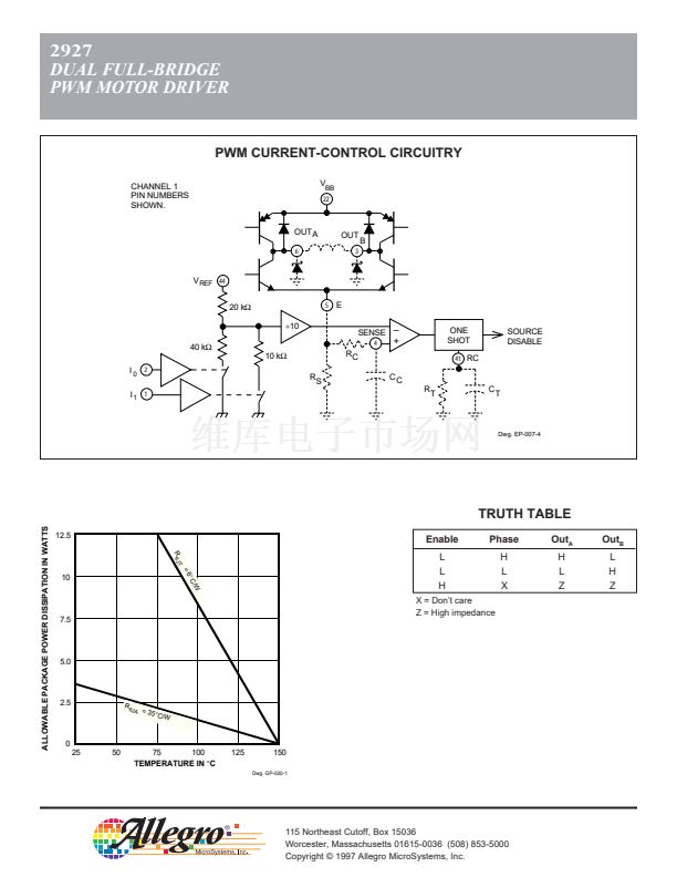 Thermal protection circuitry disables the outputs if the chip temperature