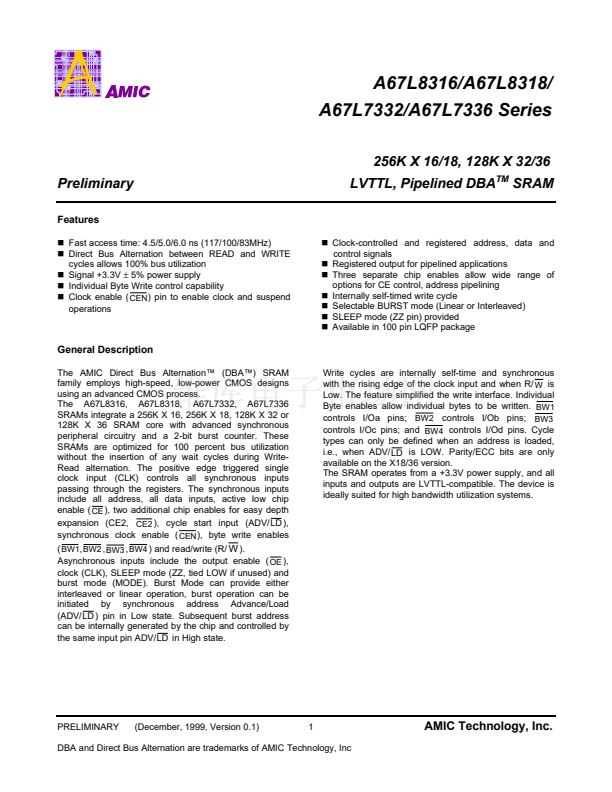 DBA and Direct Bus Alternation are trademarks of AMIC Technology, Inc