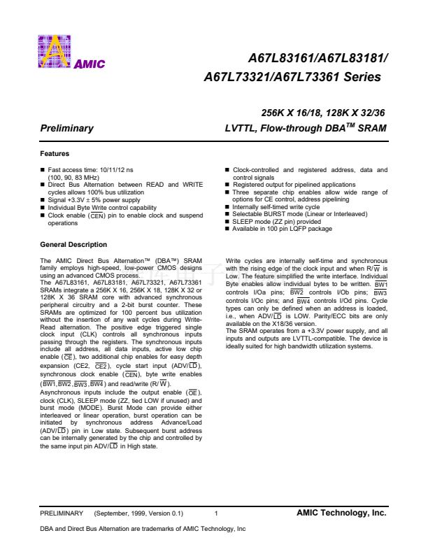 DBA and Direct Bus Alternation are trademarks of AMIC Technology, Inc