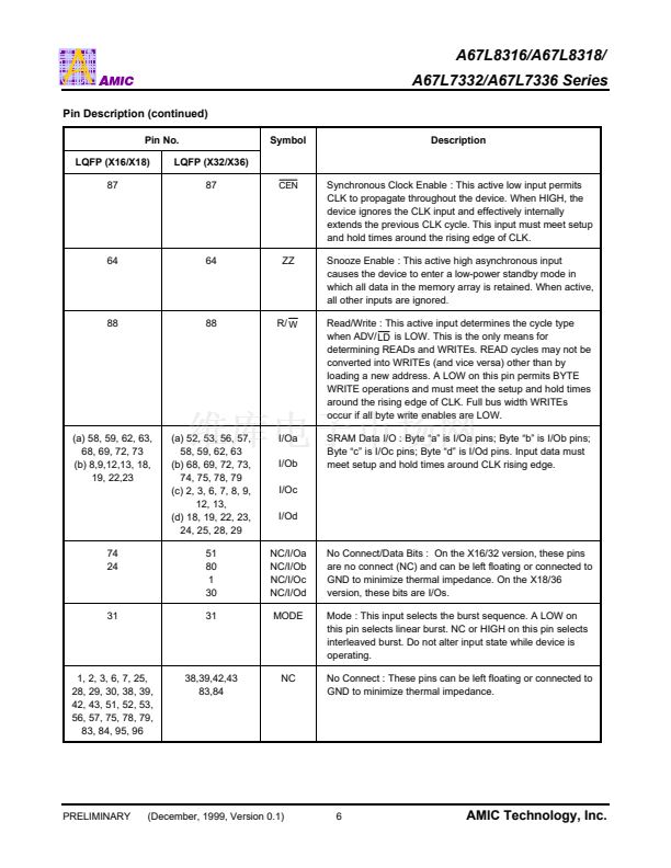 DBA and Direct Bus Alternation are trademarks of AMIC Technology, Inc