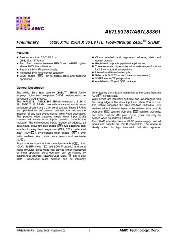 A67L83361E-10.0 Datasheet