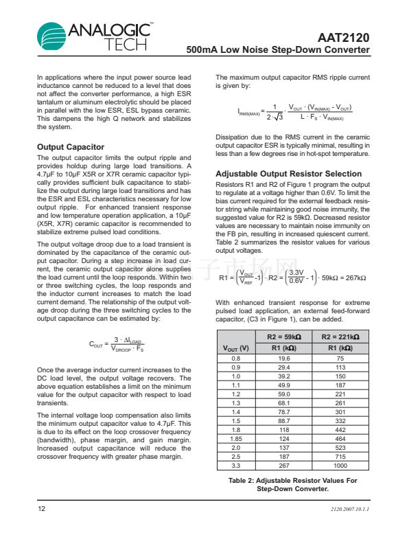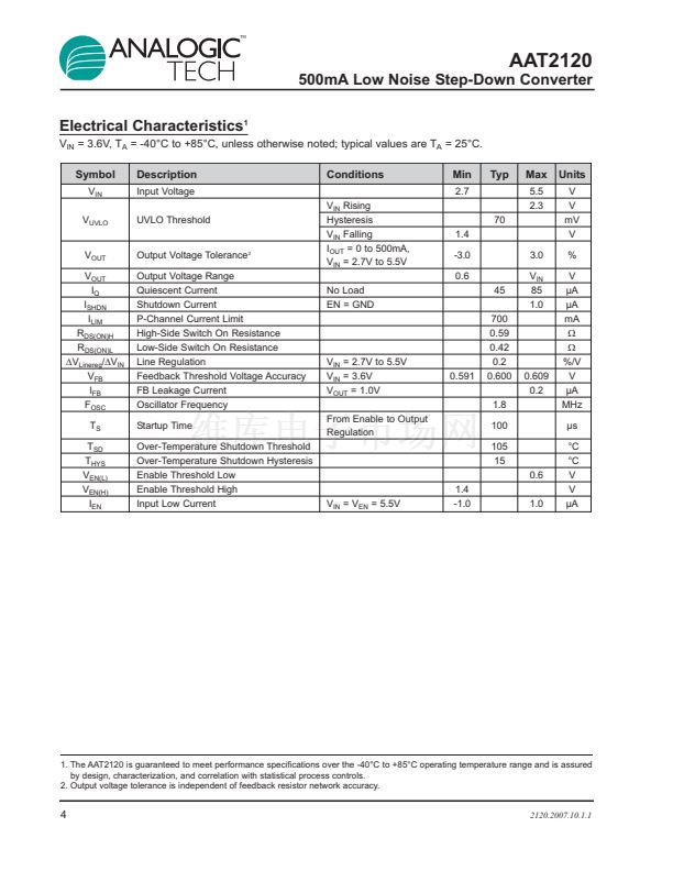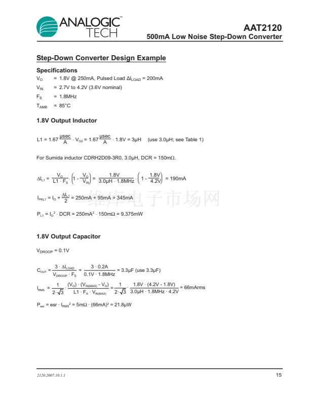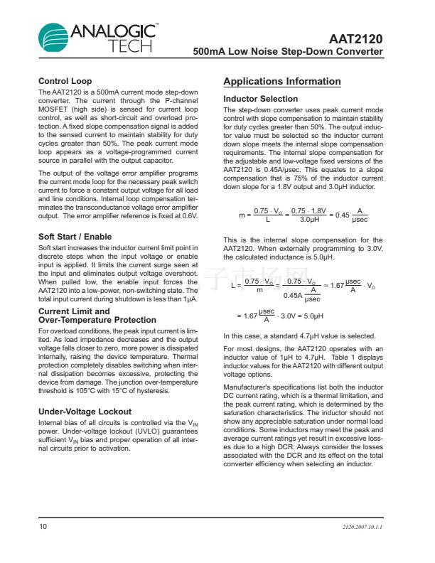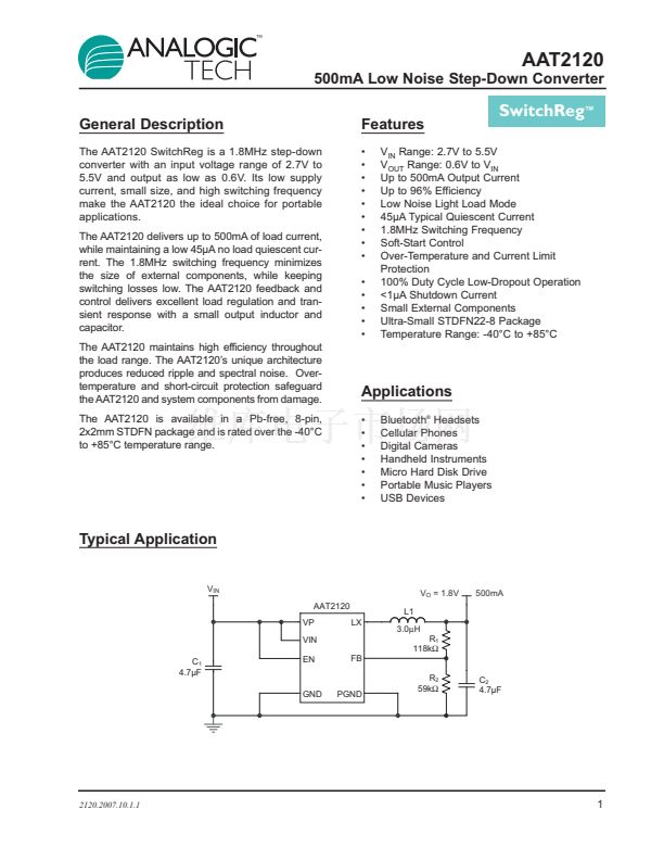 The AAT2120 SwitchReg is a 1.8MHz step-down
