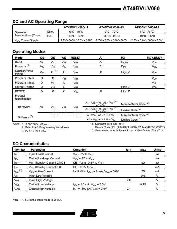 AT48LV080-12TC相關(guān)型號(hào)PDF文件下載