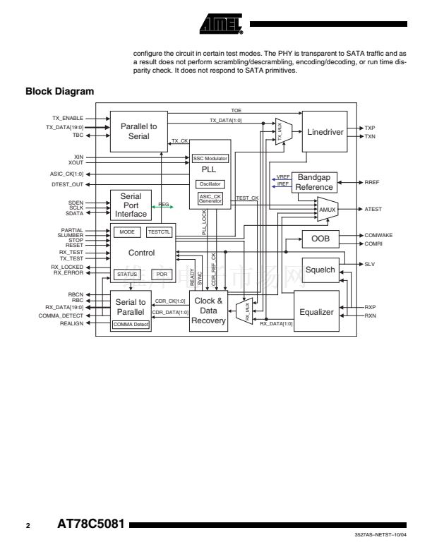 The AT78C5081 is a stand-alone Serial ATA physical layer that is designed based on