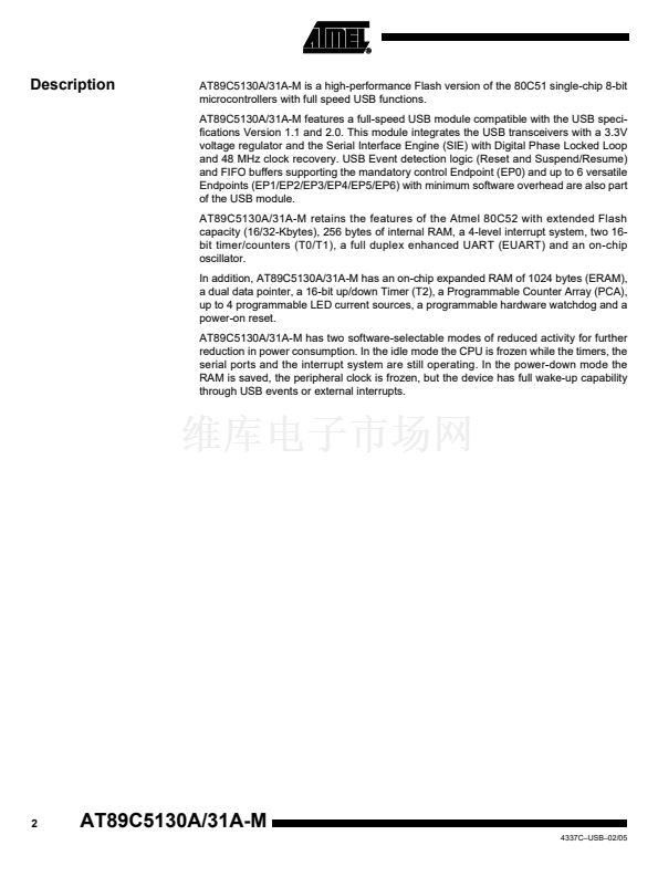 8-bit Flash Microcontroller with Full Speed USB Device