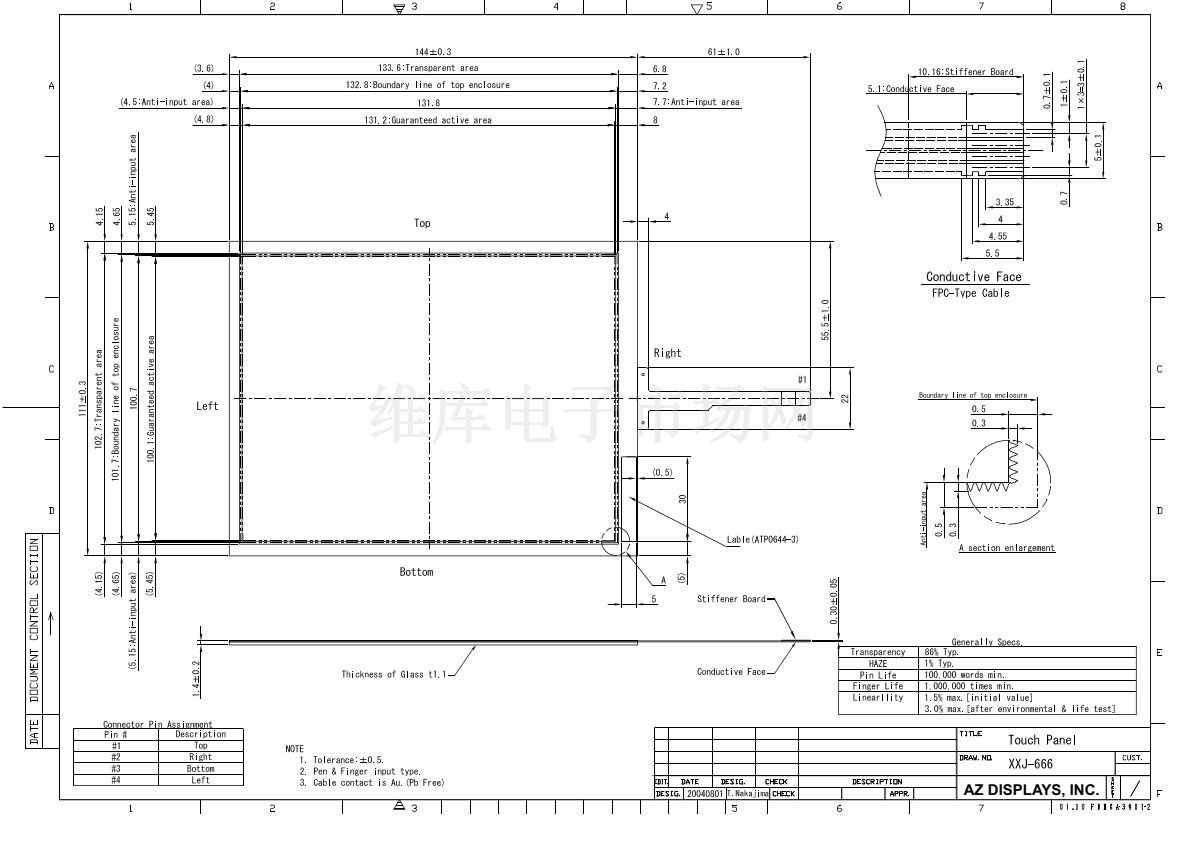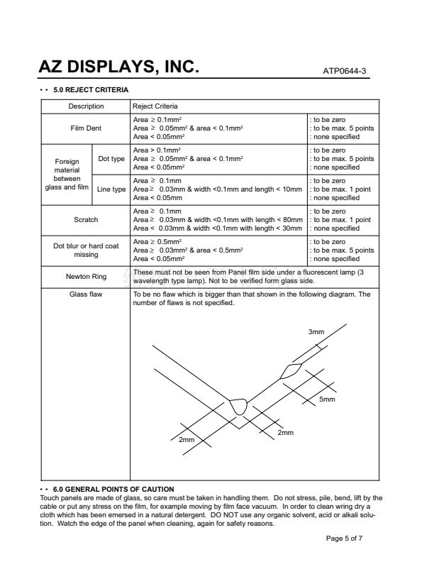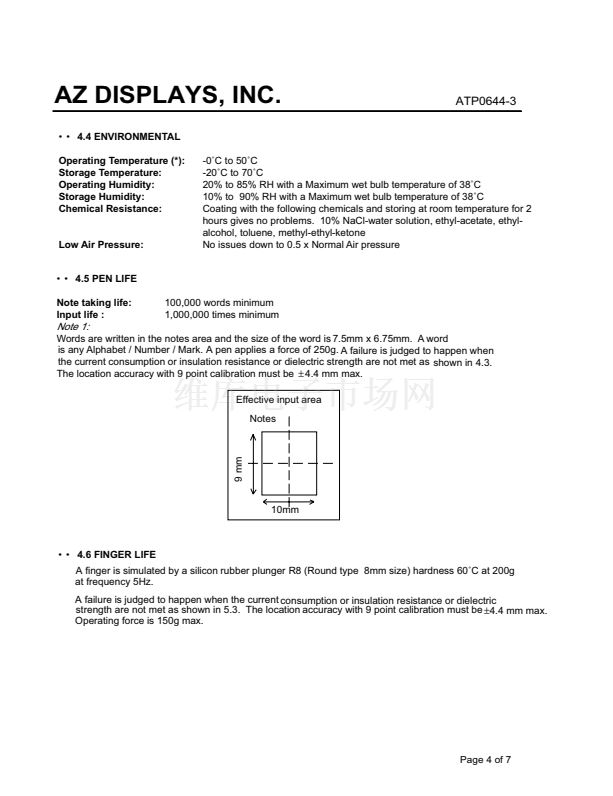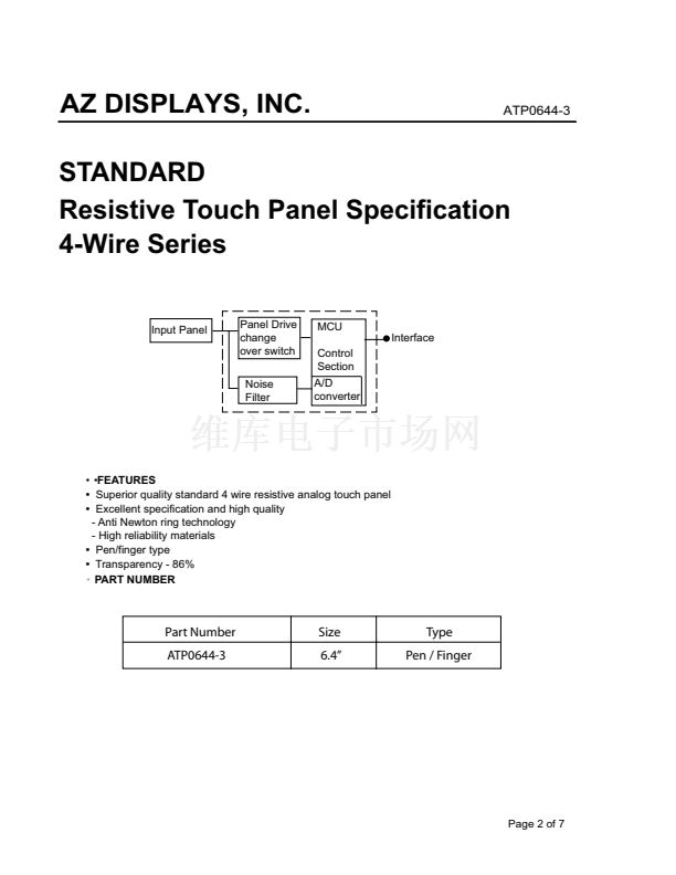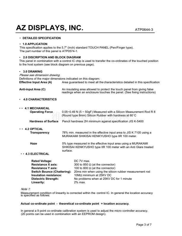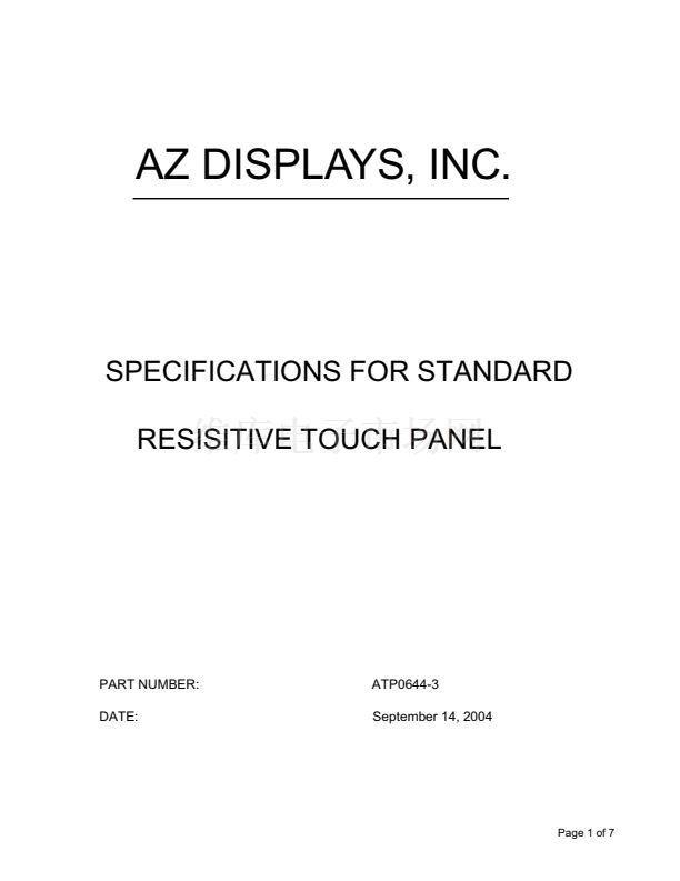 SPECIFICATIONS FOR STANDARD RESISTIVE TOUCH PANEL
