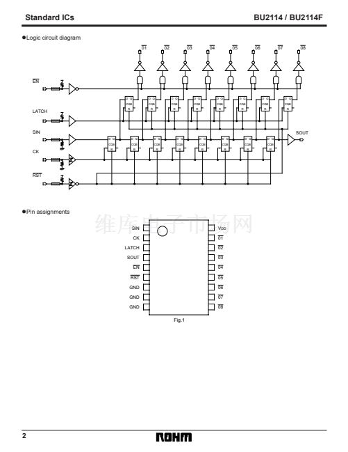 The BU2114 and BU2114F are CMOS ICs with low power consumption, and are equipped with an 8-bit shift register