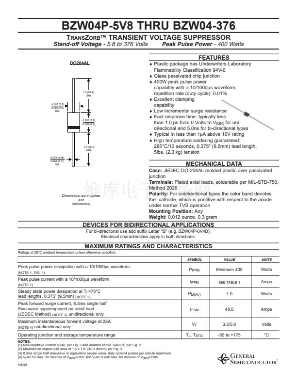 For bi-directional use add suffix Letter "B" (e.g. BZW04P-6V4B).