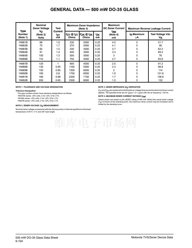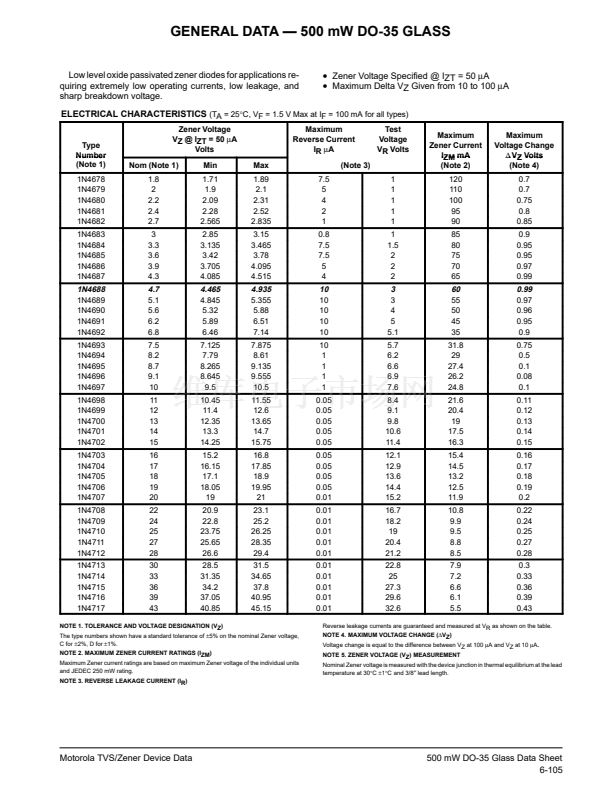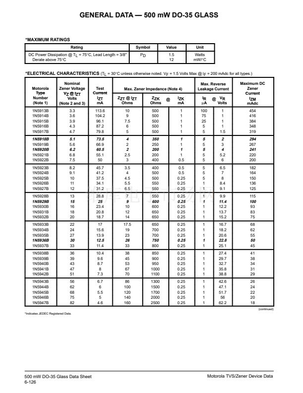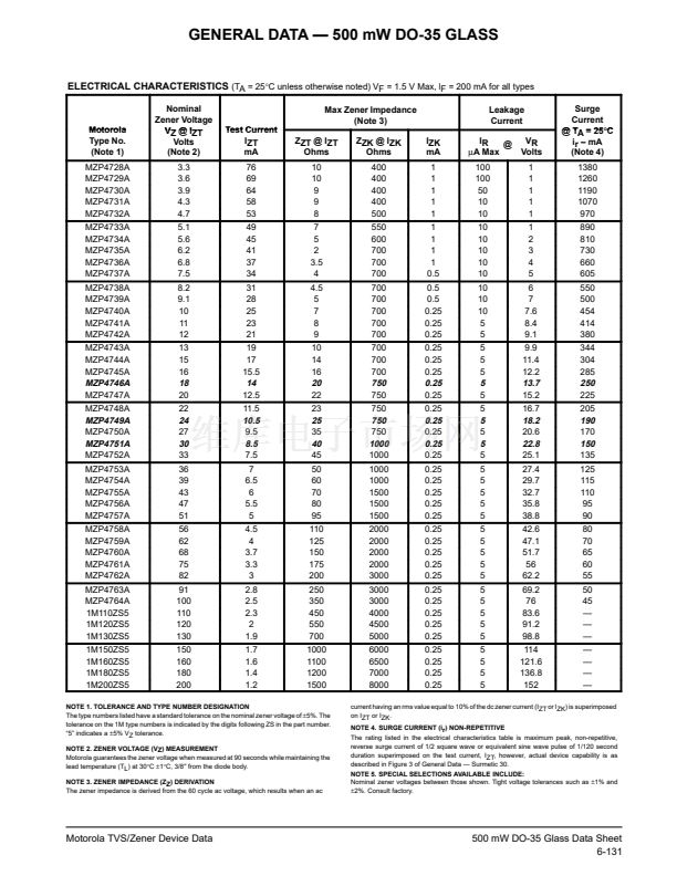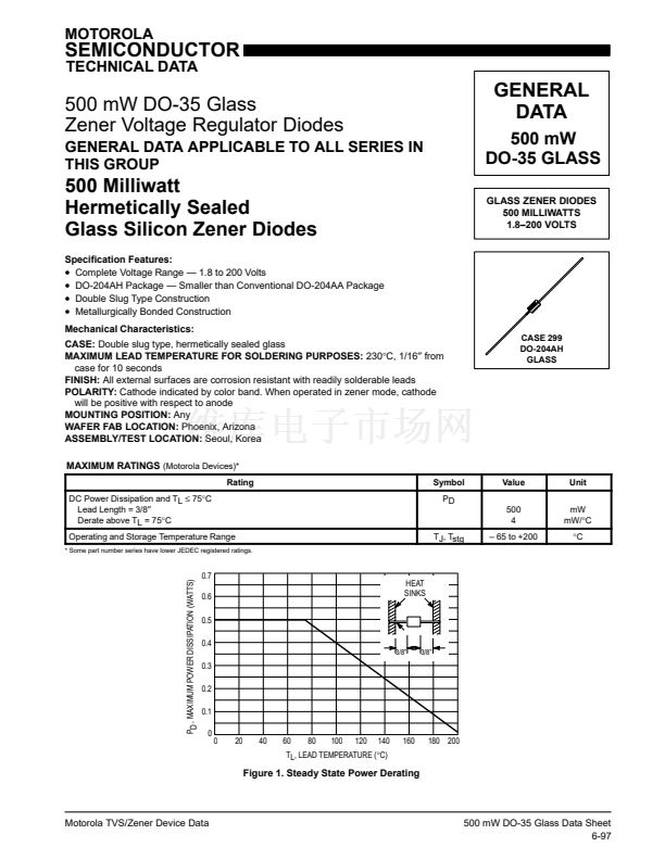 • 500 mW DO-35 Glass Zener Voltage Regulator Diodes