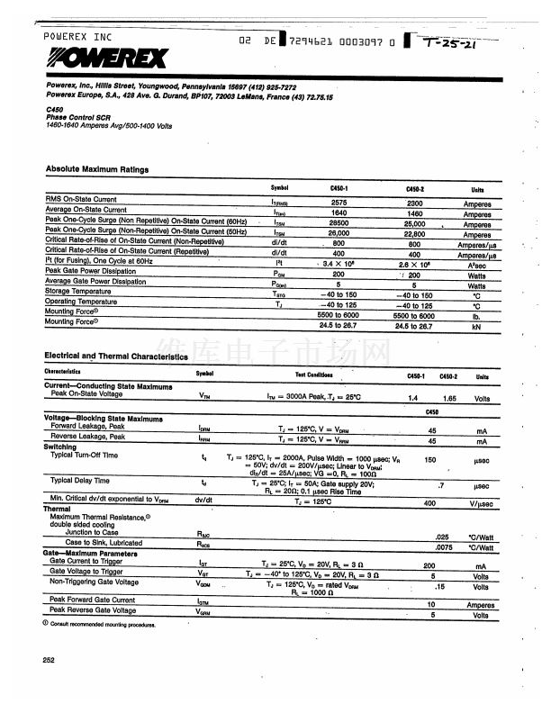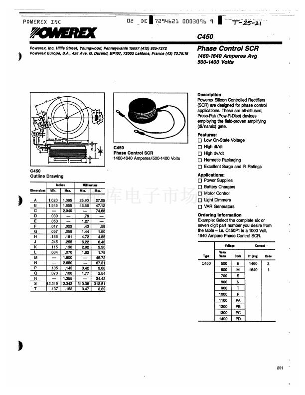 • Phase Control SCR 1460-1640 Amperes Avg 500-1400 Volts
