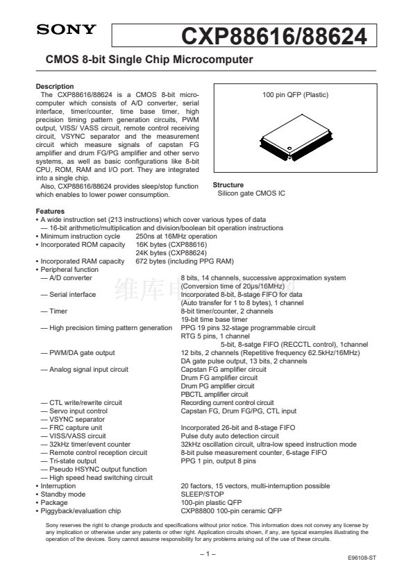 The CXP88616/88624 is a CMOS 8-bit micro-