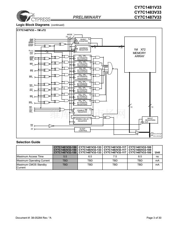CY7C1481V33-133BZC相關型號PDF文件下載
